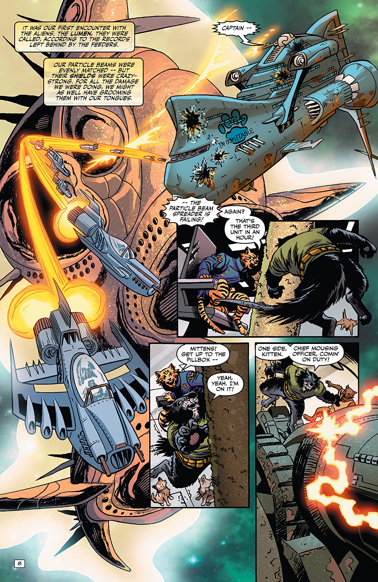 Now in one volume: the acclaimed tale of a starship run by cats! The intrepid Captain Ginger struggles to keep his fellow felines united against a hostile universe―and their own worst feline instincts, too. Featuring the entire original miniseries, plus two rare extra stories and a sketchbook of character designs.